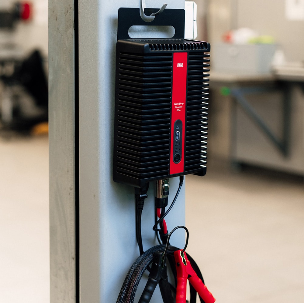 WorkshopCharger 50A is non-sparking and is protected against reverse-polarity, and short-circuiting.